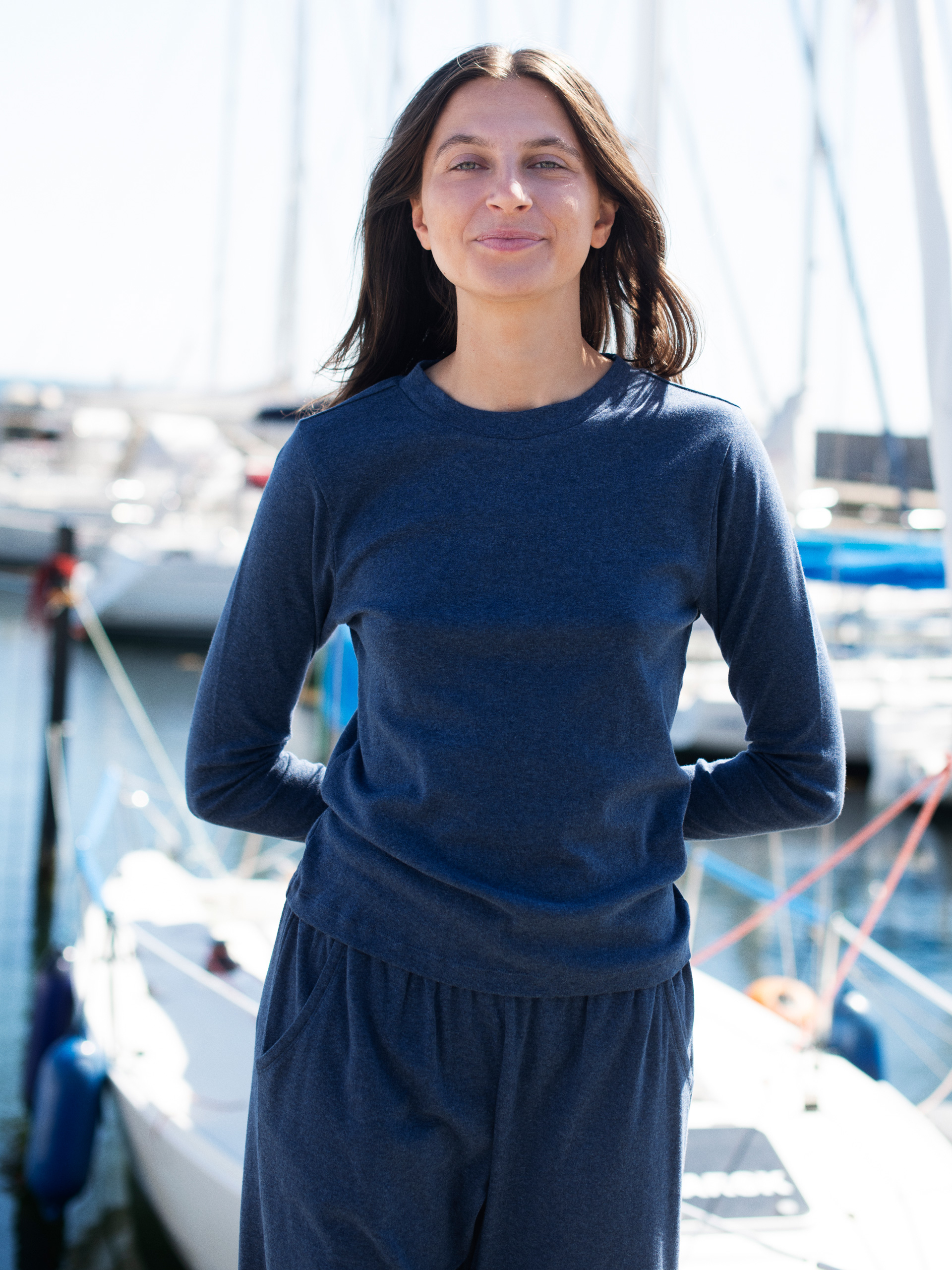 Vask med lignende farver og hæng til tørre. Let tørretumbling anbefales for at holde pasformen. |